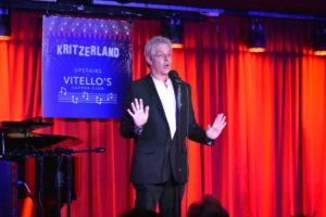 Well, dear readers, Kritzerland at Vitello’s 96 was a wonderful evening of melodious music from the pen of melodious Michel Legrand. The cast all brought their A game, which I knew they would – Daniel Bellusci, Brittney Bertier, Ellie Birdwell, Kerry O’Malley, Jenna Lea Rosen, and Robert Yacko, with Richard Allen at the piano. This was not the easiest show to assemble due to the fact that Legrand wrote so many great ballads, but in the end I think I got it right and it rolled along very smoothly. For some reason, my eyes were having a little trouble seeing my typed notes, so that was unexpected and I had fun with it. I always sit in the same spot at the front center table, then just get up and go onstage from there, but at Vitello’s it’s quite a large step up to the stage, so they got me a little metal suitcase thing as a little step and it works great – Doug usually keeps his foot against it, but didn’t last night and once, coming off the stage to my seat, the suitcase slid and I almost went crashing down, but being an old Jew AND a The Unsinkable Molly Brown fan, I simply remembered I Ain’t Down Yet and recovered quickly without actually going down. The audience gasped when it happened, which just made it funnier to me. I bowed, sat, and on we went. And I had a great time with this audience – they were loose and relaxed and really fun for me. We had a lot of walk-ins for some reason, one of whom, I’m told, was the legendary Wrecking Crew drummer, Hal Blaine.