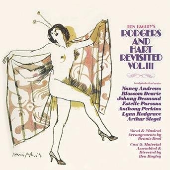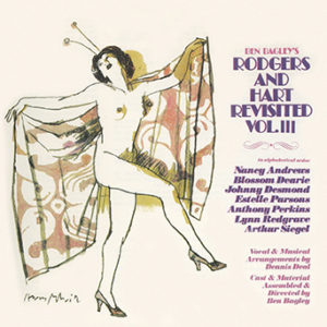 The second release is Ben Bagley’s Rodgers and Hart Revisited Volume Three, which has a great cast and is filled with fun and rare Rodgers and Hart songs.  This was one of the albums that Ben didn’t add anything to when he released it on CD, but it’s our intention, as we’ve already done, to add our bonus tracks on the shorter albums.  Hence, we’ve included an incredible twenty-eight-minute interview with Richard Rodgers, conducted by Tony Thomas.  Tony was a very good friend of mine for many years, and it’s a thrill to include this extra. What’s really special is how candid Rodgers is and he occasionally even plays the piano during the interview. Here’s that cover.