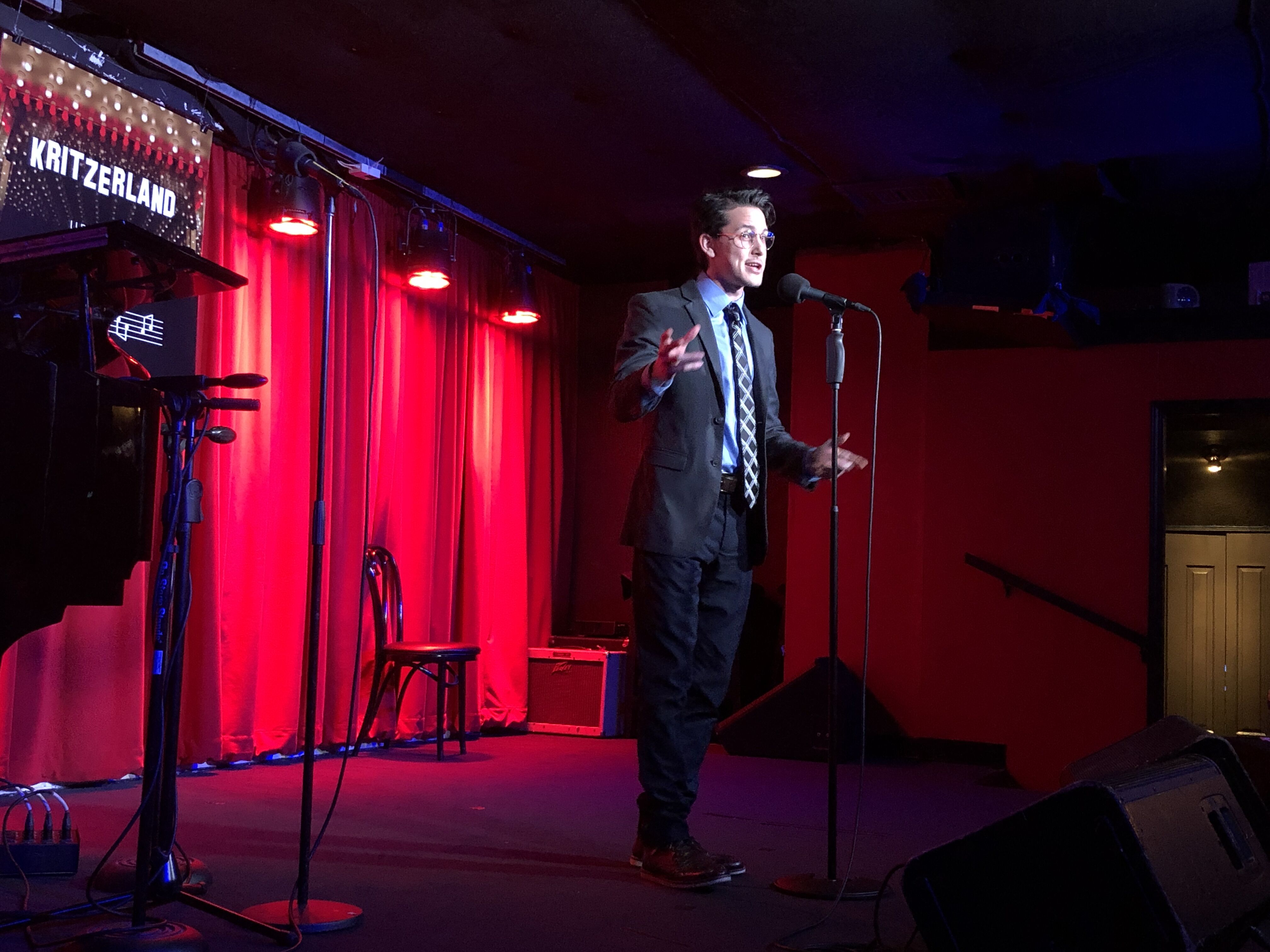 Well, dear readers, we had us a really fun run-through yesterday for the musical revue.  We couldn’t run straight through as one of our actors had to leave to get his kid, so we did all his stuff and all the group stuff first.  As we went along, we cleaned up some sloppiness in the staging (it works well when it’s very sharp, because it helps make the word understandable), I added a few things on entrances and exits, and the few cuts that were made are all to the good, and the two new numbers seem like they’ll work really well.  The cast really is wonderful – Brittney Bertier, Kerry O’Malley, Eric Petersen, Nick Sacks, and Robert Yacko, and John Boswell is always great.