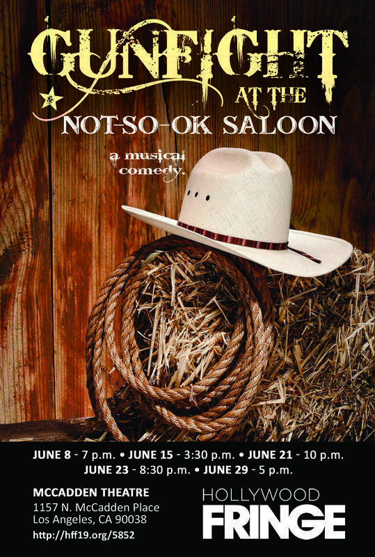 Gilbert & Sullivan may have written their final operetta in 1896 but Brooke deRosa has deliciously revived their style of musical theatre in the rambunctious Gunfight at the Not-So-Ok Saloon at the Hollywood Fringe Festival. This wonderful entertainment is set in the Wild West where men are drunks and horny while the women are loose and available for a price. Into the Saloon wanders young, innocent Chance (Jonathan Matthews) who has spent years searching every little town for his lost love, a sweet young girl who shared the same nun staffed orphanage as himself. When they were separated, they promised to stay pure and true to each other until reunited. Unfortunately, Hope (Jade Bates) is now the Saloon’s highest priced hooker and under the domination of the town’s Sheriff (Phil Meyer). Helpful Madame Netty (Nandani Sinha) tries to erase Hope’s indiscretions but it’s a mite difficult when the whole saloon crowd knows the truth. But it is fun getting everyone to sing their way to a happy ending.