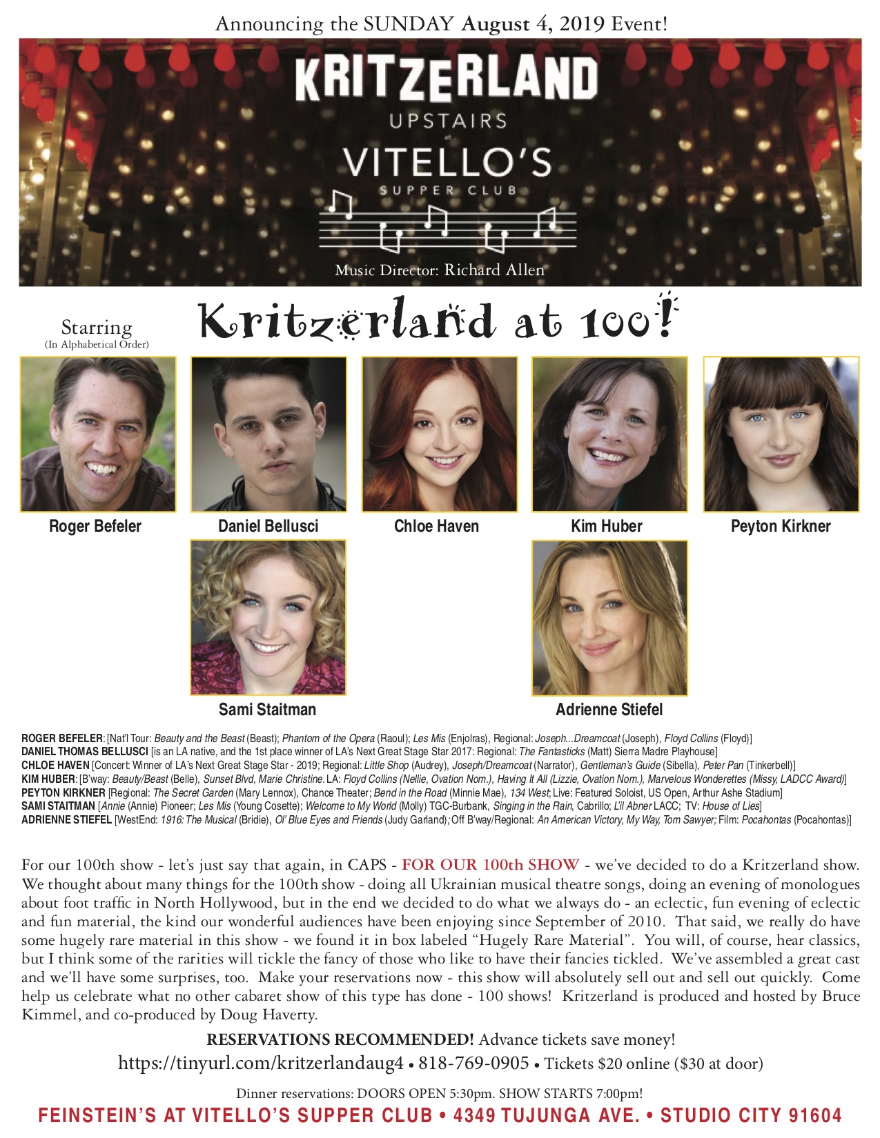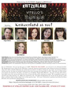Well, dear readers, it is late and I must be up by ten so I’d better just jump on these here notes quickly and with élan and spirit, not necessarily in that order. Before we go any further, however, here’s the flyer for the August Kritzerland show.