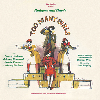 Today, I’m hoping will also be a DAY – we’re announcing our latest title in the Ben Bagley series and it’s a goodie – the studio cast album of Rodgers and Hart’s Too Many Girls, with much improved sound, new liner notes, and the erroneous track listing on the previous CD fixed. I think it will be live by noon today, if not before. Here’s the cover.