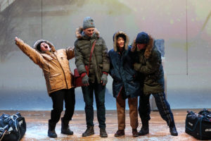 There are many standout moments in The Canadians including Gordy’s learning he’s a master at walking backwards in heels and the wild karaoke duet by Brendan and Andy to “The Time of My Life,” complete with the Patrick Swayze lift. Not to mention Gordy and Brendan’s first kiss. their second kiss, etc. Gehringer, Dorris and Brill, each playing several characters, add great support as does Chung. But the show belongs to Hester and it is a real joy to watch as his Gordy stretches the boundaries of his life and realizes all that he can be. The Canadians is something to cuddle up with on a cold winter’s night in Manitoba. We in Southern California will just have to imagine a cold night.