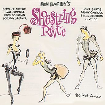 Well, dear readers, this week is flying by, like a gazelle with irritable bowel syndrome. And yesterday, if I may just say, was a day-and-a-half kind of day. But before I get to that, let me do this – announce our two new Kritzerland releases: First up is Ben Bagley’s Shoestring Revue, a classic revue from when revues were revues, with songs by Charles Strouse, Lee Adams, Sheldon Harnick, Alec Wilder and the like, and featuring Bea Arthur, Dody Goodman, Jane Connell, Dorothy Greener and other wonderful folks – funny, tuneful, and delightful. Here’s the cover.