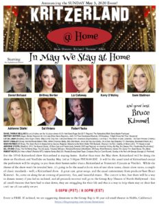 Tomorrow and Sunday will be rehearsing via Skype and/or Zoom and doing whatever else needs doing, and hopefully by Wednesday we’ll be in very good shape so we can then work on all the technical stuff, which is very complex, as you might imagine. And then on Sunday we do our show.