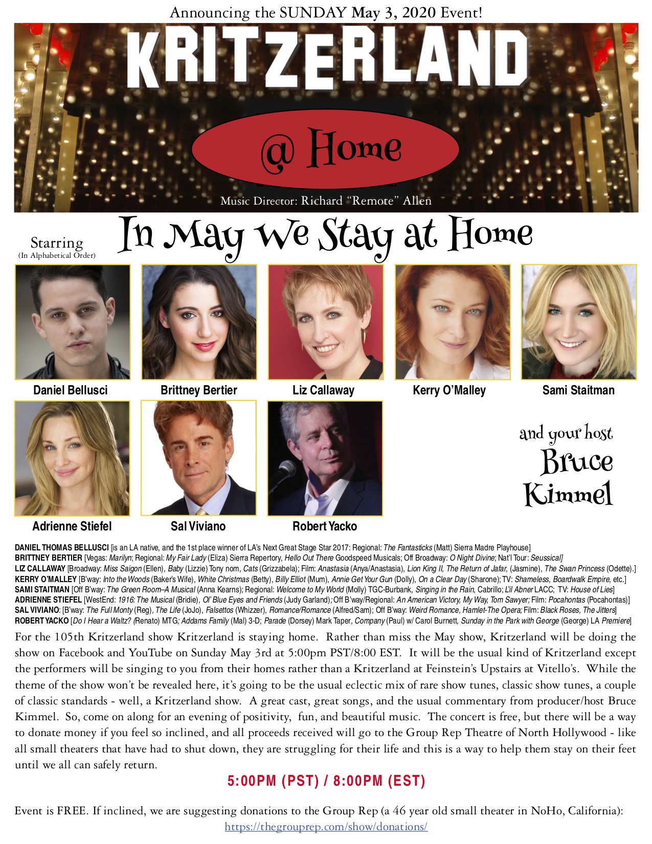 Today, I’m going to actually and try to be up no later than eleven. If I haven’t finished the commentary, I’ll do so then, then do other stuff, and then hopefully pick up some packages and mail (I know one package that’s supposed to arrive today and hopefully it will), I’ll eat stuff that doesn’t add up to more than 1200 calories, I’ll finesse the commentary, I’ll keep getting tracks to singers, and then I’ll watch and listen at some point. Here’s the flyer for our show.