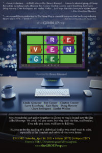 Yesterday was an okay day. I got seven hours of sleep, saw we’d gone up to 164%, so that was nice, did some cheerleading but of course can’t do too much when the percentage point isn’t going up. I answered e-mails, decided for sure we’re doing a Q&A after Saturday’s performance – both links will be in Saturday’s notes – and then I made myself what in essence was a big wedge salad, only chopped. Lettuce, red onion, bleu cheese crumbles, bacon, and tomato, with Bob’s bleu cheese dressing on it. It was actually great. Then Facebook went down for a while, then it came up, then it went down, otherwise I kept my eye on the campaign and also posted about the new performance of project two aka Revenge. Here’s a new flyer with some review quotes.