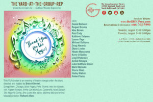 The rest of the week is getting the cabaret thing ready, but also choosing the songs for our anniversary show. I have to have that done by the weekend. Wednesday, we have our long rehearsal for the Group Rep cabaret, and then there are some meetings and meals, getting some revisions done for Nothing in Common, then we have our stumble-through/tech on Sunday night, then we do the show on Monday and Tuesday evenings. Here’s the little postcard Doug did for the show.