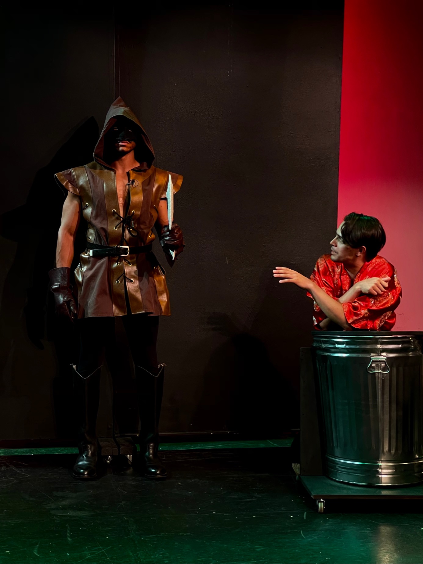 First up is For Whom the Southern Belle Tolls, Durang’s parody of Tennessee Williams’ The Glass Menagerie. Throughout his career, Durang has written parodies of famous films, plays and literature; everyone and everything from Sam Shepard, Noel Coward, Wallace Shawn, Jean Giradoux, The Hardy Boys, The Brothers Karamazov, Dickens, Medea and the Book of Leviticus. In this parody, Amanda Wingvalley (Michael Mullen) is quickly running out of plans and patience as she deals with the future of her children. Shy Lawrence (Dan Lovato) uses the excuse of his limp, his eczema and his asthma to keep from meeting prospective mates. He would rather spend time with his collection of glass cocktail stirrers which he has painstakingly named. His brother Tom (Michael J. Marchak) prefers to spend his evenings at the movies, finding sailors to bring back to his room. But he finally relents and brings home a Feminine Caller, co-worker Jinny (Michelle Bonebright-Carter) from the factory. Not only is Jinny hard of hearing from working on the noisy machines (she shouts everything and usually hears it wrong to begin with) but she is a lesbian with a girlfriend so no future wife for Lawrence. Mullen has plenty of charm and vivacity as Amanda slowly breaks down over the disastrous dinner and date and keeps the madcap madness rolling merrily along.