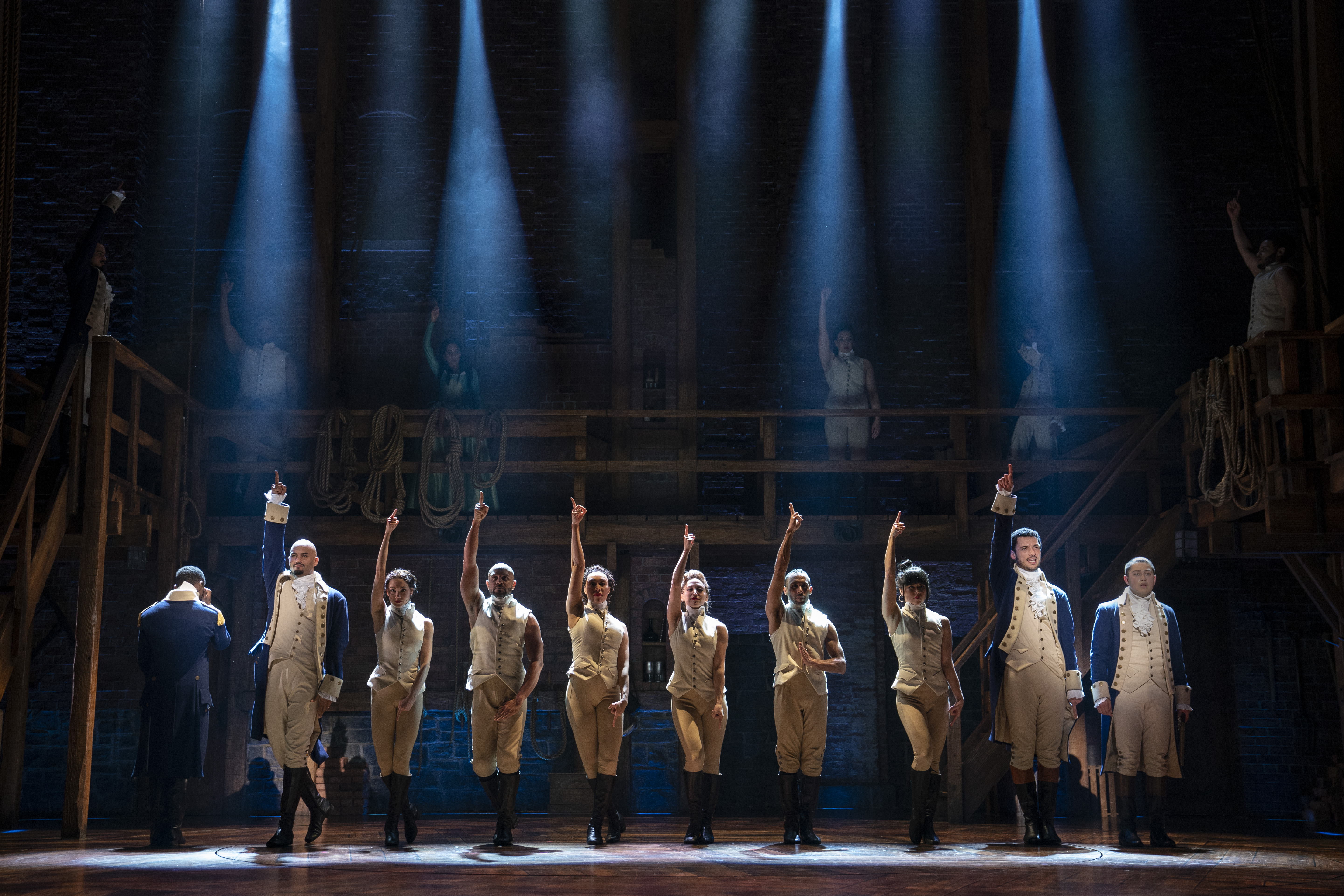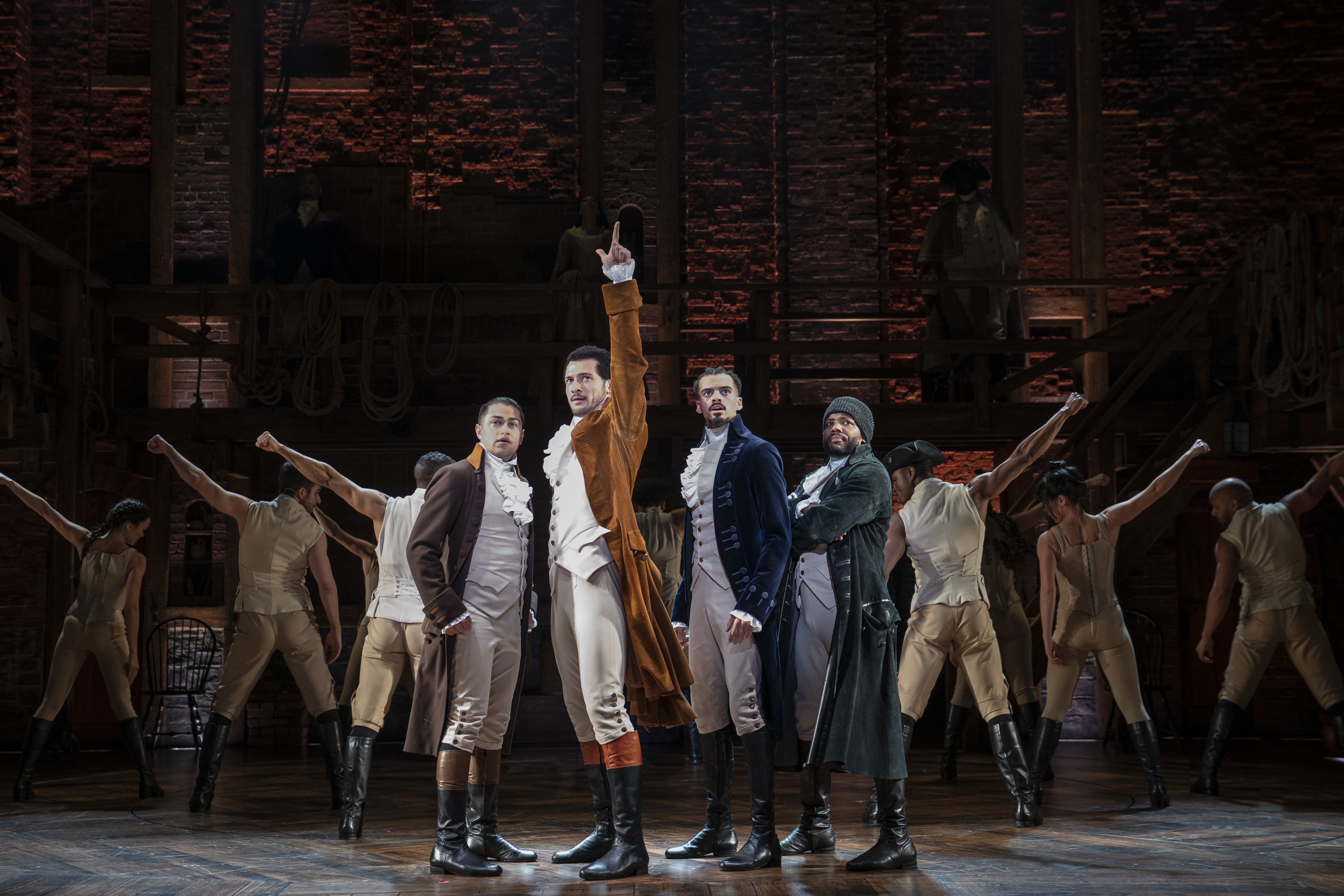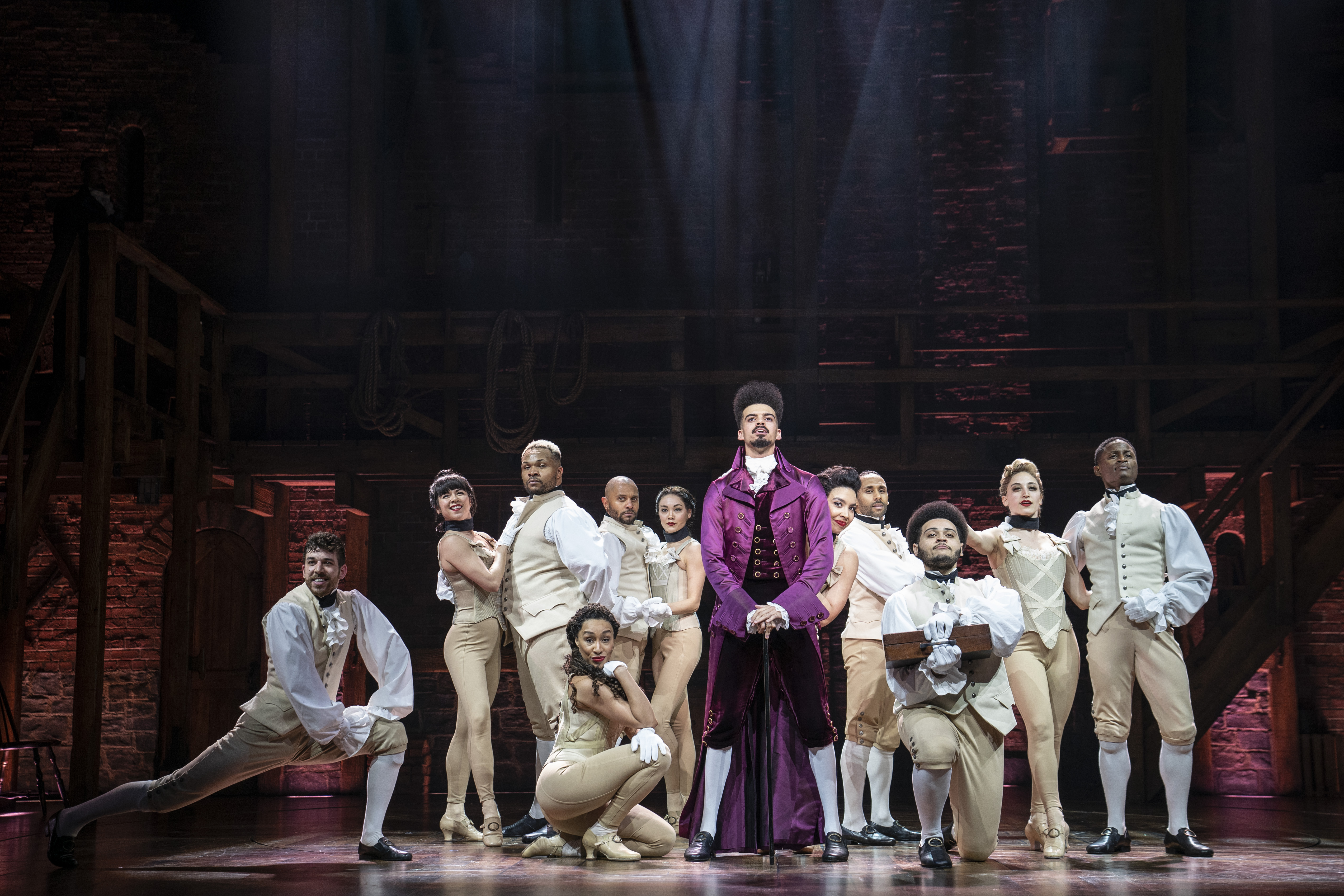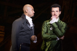 Hamilton An American Musical has been a pop culture phenomenon since it premiered off-Broadway in February, 2015 and on Broadway in August of the same year. Its sold-out run had premium tickets selling for four figures. It received a record number 16 Tony nominations, winning 11 of them and also picked up a Pulitzer Prize. The National Tour of the musical played a lengthy run at Hollywood’s Pantages Theatre in 2017. This reviewer had managed to miss seeing the show until last night. I must admit hip-hop and rap are nowhere near the top of my list of musical choices. They actually would not even be on any such list I would compose. I would prefer to listen to an evening of yodeling. That still applies this morning after spending nearly three hours in the company of the USA’s founding fathers according to playwright, composer, lyricist Lin-Manuel Miranda.