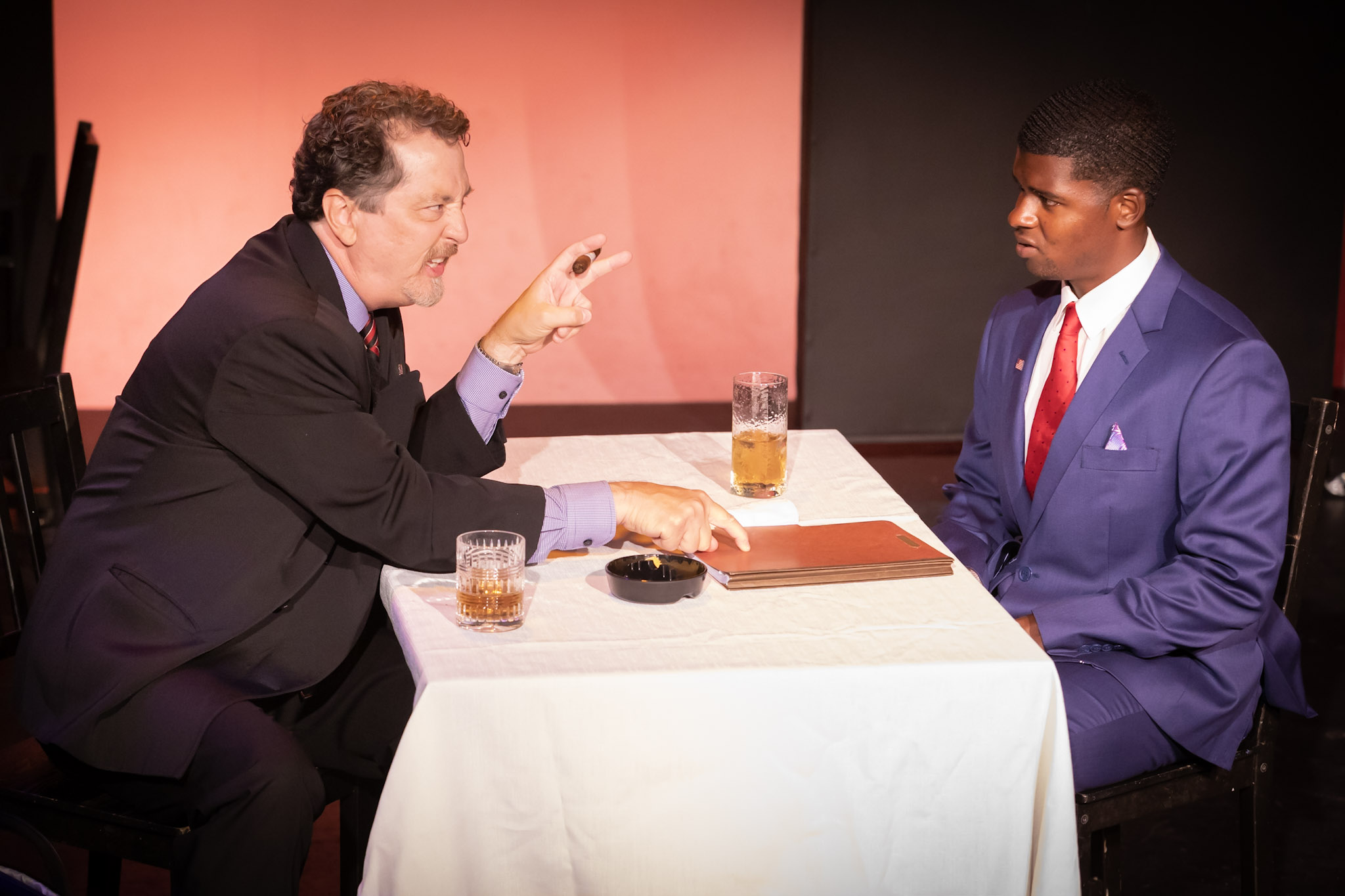 Conservative Southern Senator August (Patrick Randolph) is interviewing Baker (Ethan Williams) an ambitious, young African-American aide to a Congresswoman. The Senator is hoping to entice Baker to be the Black Face for the Georgia Voter Suppression Law. As Baker points out all the things that would limit voting and be challenged in court, the Senator encourages him to read further. As the limitations become more heinous, the Senator continues to smile, knowing they will lose some items but the main part of the bill will survive. Baker gets a backbone and refuses to be a part of the plan, even if it means the end to his budding political career.