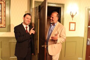 In his World Premiere play, Our Man In Santiago at Theatre West, playwright Mark Wilding has written a fanciful comedy of what might have been. While testifying before a fact-finding Senate Committee (voiced with Southern delicacy by Michael Van Duzer), CIA spook Daniel Baker (Nick McDow Musleh) purports to tell the true story, the short version. Baker was basically a newbie agent when he was sent to Santiago, Chile in 1973. He had spent his first three years on station in New Zealand, mostly protecting the various native bird populations from endangerment from feral cats. Due to bureaucratic misunderstandings, he has been chosen to be the CIA’s man who will finally rid Nixon and Chile of its duly elected president. But Baker, evidently handling his first firearm, drops the bullets into a candy dish to start his assignment. His handler, station chief Jack Wilson (George Tovar), is a gruff veteran with eyes on promotion. He informs Baker his job is to get Allende out of the presidential palace, located across the street from their hotel, by any means necessary, meaning dead or alive. Time is of the essence since the military is planning to bomb the palace momentarily.