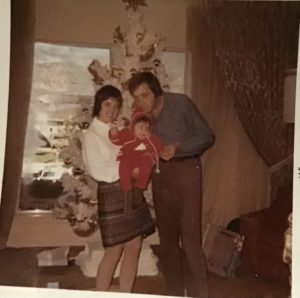 Tomorrow, I have a visitor coming at eleven-thirty and that visit should last an hour or so, after which it will be mostly a writing day with breaks for a few other things. Then this week is all writing all the time, with perhaps a meal or two out. And since these here notes are on the short side today, here are some photographs that the Darling Daughter texted to me about a week ago and that I kept meaning to share. These are quite old, and I had never seen any of them. First up is an amusing photograph of my ex-wife (with her shag haircut – I think that’s what they used to call it) and li’l ol’ me holding our new infant Darling Daughter. I couldn’t believe this one.