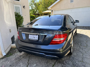 And so, I began thinking outside the Infiniti box, which turned out to be a smart move. Now, history: I’ve always dreamed of having a Mercedes Benz motor car, as far back as fifty years ago, when I was desirous of that sporty Mercedes two-seater with the hard top that was removable. But they were hugely expensive – 10K. Now they’re about 80K or more. Mercedes are still hugely expensive, even the least expensive models in the “C” class. But I lucked out almost instantly and found a 2015 C 250 that was in the perfect price range even with tax and license. It was a color I liked, in primo condition, and the only downside was the mileage, which was large. But I did research and found that the high mileage wasn’t really an issue if the car had been taken care of, and according to the Carfax on it, it had been. The research showed clearly that a well-cared for Mercedes could easily go to 250,000 miles and indeed there were some for sale with that much mileage. I immediately e-mailed the dealer who had it, a small company dealing in mostly pre-owned luxury cars. They got back to me instantly and asked if I could come see the car and I said I’d be there in thirty minutes, which I was. My salesperson, Trina, was the best. She showed me the car, I took it for a test drive, we talked about the mileage, she showed my other cars they had, too. There was no pressure at all. She even encouraged me not to make an instant decision but to go home and think on it.