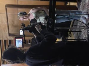 Well, dear readers, we were back in the saddle again, shooting two songs that take place in a recording studio. We were originally going to do those in New York, but the schedule became too hectic and it was just easier to do it here. We convened at ten o’clock at NRG Studios in North Hollywood, just two blocks east of The Federal. I know I recorded something there many moons ago and I’m pretty sure it was one of the Grant Geissman CDs. Hard to believe that’s almost twenty-three years ago now. Anyway, I met our engineer Adam, and he had everything set up, as we’d sent him the orchestra track in advance. Our New York cameraman was with us and we had our new dolly thing that enabled us to do some fluid moving shots. The original plan was to record Sami’s vocals for every shot we did. But as I thought about it, I knew that was crazy, so we spent the first hour pre-recording the two songs. Once that was done, then we went and shot the video to playback, and she lip-synced perfectly. Really happy we did that and I kind of wish we’d done it for all the songs, but alas, we did not. We spent an hour on the first song, doing various moving shots and also shots that didn’t move. Then we moved on to the second song and did the same shot set-ups for that. We got that in about forty minutes. Then we moved into the booth and shot the board and engineer and a shot from the window of the booth into the studio. So, Marshall Harvey will have lots of excellent choices. The Pro Tools session went to engineer John Adams for mixing, and we were out of there right on time at two.