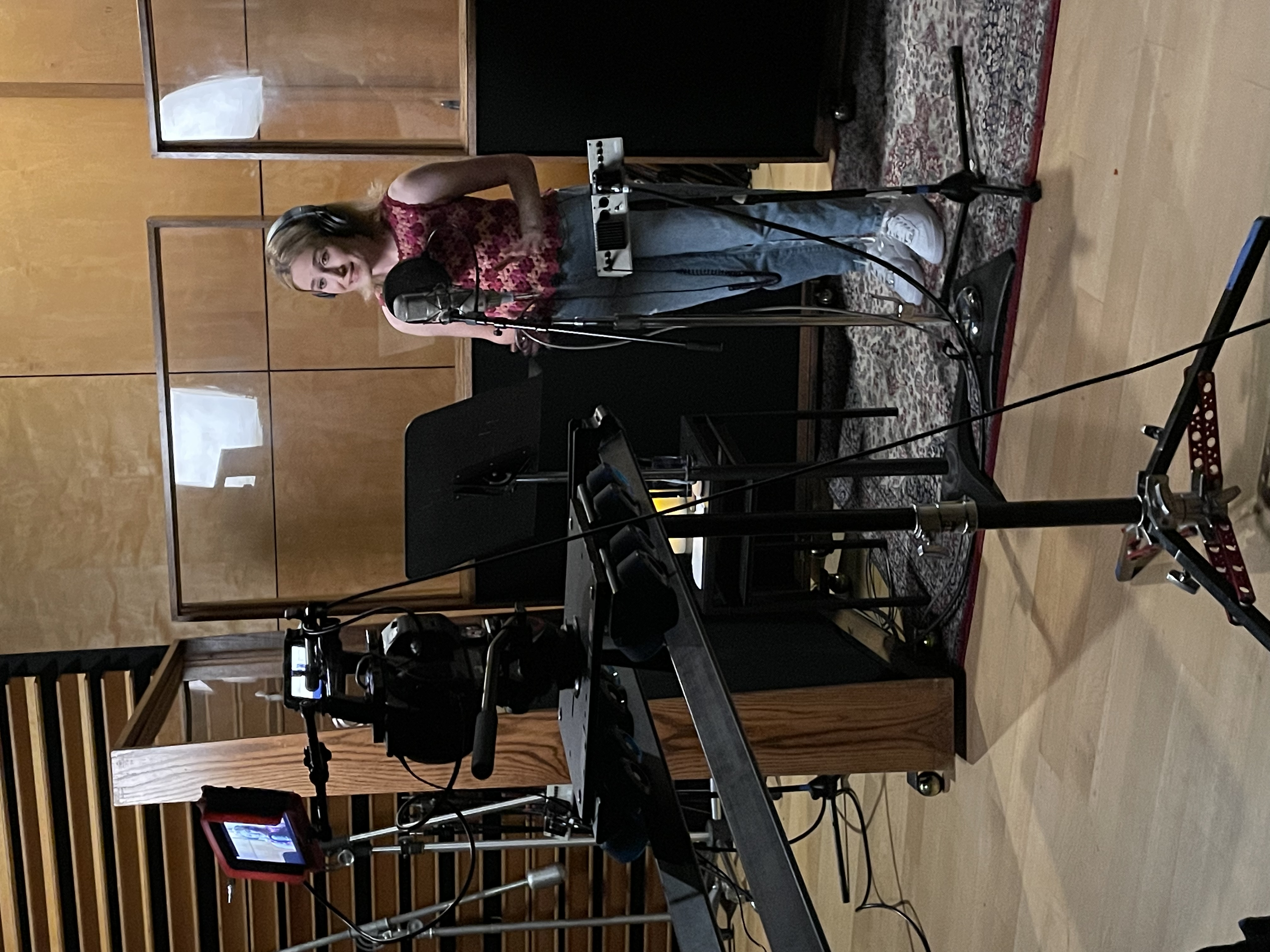Well, dear readers, we were back in the saddle again, shooting two songs that take place in a recording studio. We were originally going to do those in New York, but the schedule became too hectic and it was just easier to do it here. We convened at ten o’clock at NRG Studios in North Hollywood, just two blocks east of The Federal. I know I recorded something there many moons ago and I’m pretty sure it was one of the Grant Geissman CDs. Hard to believe that’s almost twenty-three years ago now. Anyway, I met our engineer Adam, and he had everything set up, as we’d sent him the orchestra track in advance. Our New York cameraman was with us and we had our new dolly thing that enabled us to do some fluid moving shots. The original plan was to record Sami’s vocals for every shot we did. But as I thought about it, I knew that was crazy, so we spent the first hour pre-recording the two songs. Once that was done, then we went and shot the video to playback, and she lip-synced perfectly. Really happy we did that and I kind of wish we’d done it for all the songs, but alas, we did not. We spent an hour on the first song, doing various moving shots and also shots that didn’t move. Then we moved on to the second song and did the same shot set-ups for that. We got that in about forty minutes. Then we moved into the booth and shot the board and engineer and a shot from the window of the booth into the studio. So, Marshall Harvey will have lots of excellent choices. The Pro Tools session went to engineer John Adams for mixing, and we were out of there right on time at two.