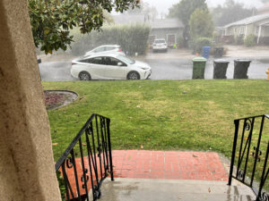 Well, dear readers, I have breaking bombshell news for you: We had us some real old-fashioned rain, we did. No, it didn’t last for hours, but when it was coming down it was coming down heavily. It was fun to see it when I opened the front door. In fact, I snapped an actual photograph of it. Here is the proof.