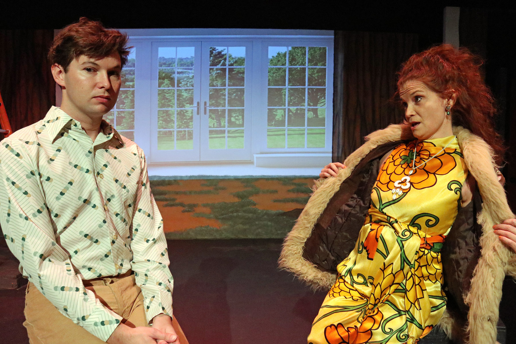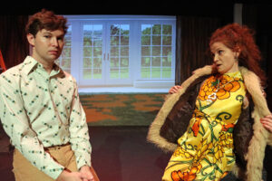 GRT’s production uses projections on the back wall and on smaller screens that come and go from the wings in an attempt to open up the action. Unfortunately, they don’t add much to the show and Larry Eisenberg’s lackadaisical direction lets the production drag on. Most scenes just meander until the eventual fitful blackout. The large supporting cast is fairly bland with only veteran Lloyd Pedersen’s Father Finnegan adding an occasional laugh. Gina Yates overplays her one scene as method actress Sunshine, who really get into Harold’s suicide attempt on their date.