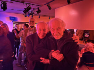 Well, dear readers, we had us an amazing Kritzerland 124 show last evening, surely one of our best. We had a great audience and I knew they were great the minute I got up to do the opening patter. Lots of big laughs throughout, everyone loved hearing all the rarities, and the cast was on fire. So, here’s what we did: The opening number was Make the Most of Your Music from the London Follies revisal from the 1980s, done to perfection by Robert Yacko. Then came Marissa Margolis who hit it out of the park with the film version of The Glamorous Life from A Little Night Music. Next was Kevin Spirtas who did a wonderful job on Good Thing Going. Trisha Rapier was next with the wordy and difficult More, which she did to perfection. Then came Kerry O’Malley, recreating Moments in the Woods from the 2001 revival of Into the Woods, in which she played the Baker’s Wife. Keri Safran did a beautiful job with Anyone Can Whistle, and then I did one of my Sondheim parody What If lyrics – this one being What if the Stephen Sondheim at the time he wrote A Funny Thing Happened on the Way to the Forum had written Sweeney Todd. It went over like gangbusters, I’m happy to say. Robert Yacko came back with a gorgeously sung What Can You Lose from Dick Tracy. That was followed by Kerry O’Malley doing a brilliant Send in the Clowns. Then came the rarest song of the evening, Dawn, from the unmade film musical Singing Out Loud – Keri Safran did a great job. Then I did With So Little to Be Sure Of from Anyone Can Whistle, because Guy Haines was a no-show. Then came my put-together of You’re Gonna Love Tomorrow and Not a Day Goes By, done beautifully by Trisha Rapier. Keri Safran was next with The Ladies Who Lunch, in which she brought the house down doing each verse as a different singer – she’s a brilliant impressionist and she did Bernadette Peters, Patti LuPone, Bebe Neuwirth, Liza Minnelli, Dolly Parton, Brittney Spears, Julie Andrews – I think that was everyone, with a little Stritch thrown in at the end, and then each lady came back for the “Rises” at the end. I called out the names during the song. Hilarious it was. Then Robert was back with Multitudes of Amys, cut from Company, Kerry closed with a fantastic version of Everything’s Coming Up Roses, and finally Kevin Spirtas did a wonderful Being Alive. We always close our shows with a sing-along, but as I told the audience, there is no known Sondheim song that could be a sing-along, so instead we did Chitty Chitty, Bang Bang – why? Because Richard Sherman was with us as was his lovely wife Elizabeth, her first time out since the pandemic, I believe. What a treat to have them there.