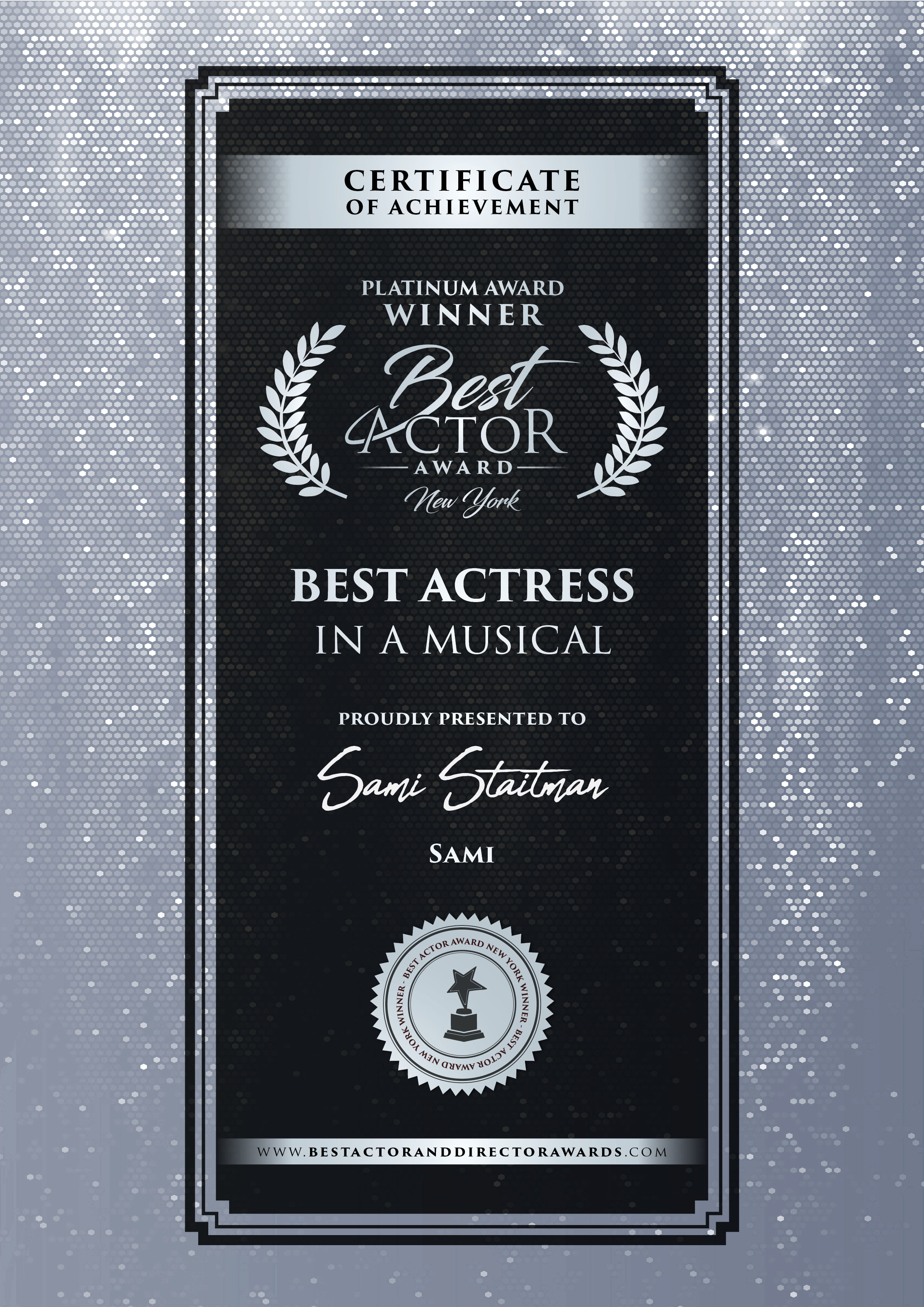When I got home, I was greeted with this good news – another festival win, this time for me as director and another for Sami as Best Actress in a musical. Here are those. I don’t think they mean that much in the scheme of things, but it’s still nice to get them.