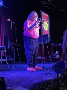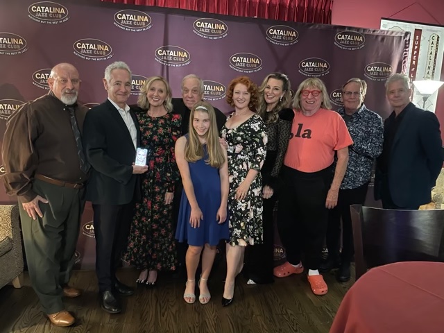 Next, Adrienne did a stunning job with The Man That Got Away – amazing. Then Jason did his hilarious Popular, which he did to me, so that was grand fun. Kerry did the penultimate song, a ME original from my musical Feast – The I’m-On-a-Diet Blues – she rocked the house, really rocked the house. Finally, to end the show on a wistful note for these wacky times, Ava did my song, Everything Is Gonna Be All Right from Welcome to My World. Gerald Sternbach did his customary great work. And that was our anniversary show. Here are some photographs. First, our cast plus Doug and me.