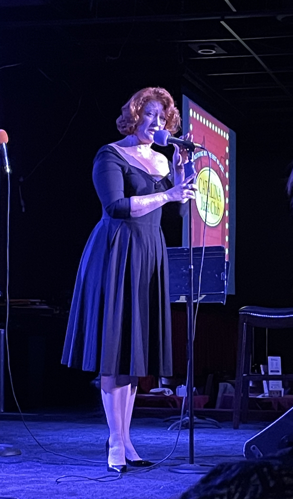Then came Jason Graae singing She Touched Me from Drat! The Cat! and I got to let the Cat out of the bag at long last. I’ll be directing the show at the Group Rep and we open next March. There is an entire saga about getting the rights, but we’re thrilled it all worked out. Jason, of course, owns the song. Then it was Bruce Vilanch doing The Best of Times from La Cage Aux Folled, interspersing it with his hilarious repartee. Next, Kerry was back with a song I adore called Why Can’t I Forget by Jeff Harris and Judy Barron – Kerry really can do anything and this one was funny and touching. Then Robert was back with a wonderful Billy Barnes song called Ambivalent, which Robert did great. Then it was Adrienne and The Alto’s Lament – lots o’ laughs. Anastasia came back with Not a Day Goes By – glorious. Then we did another What If, this one a perennial favorite – What if Frank Loesser, instead of writing Guys and Dolls had written Sweeney Todd. Robert has done it many times, and nobody does it better.