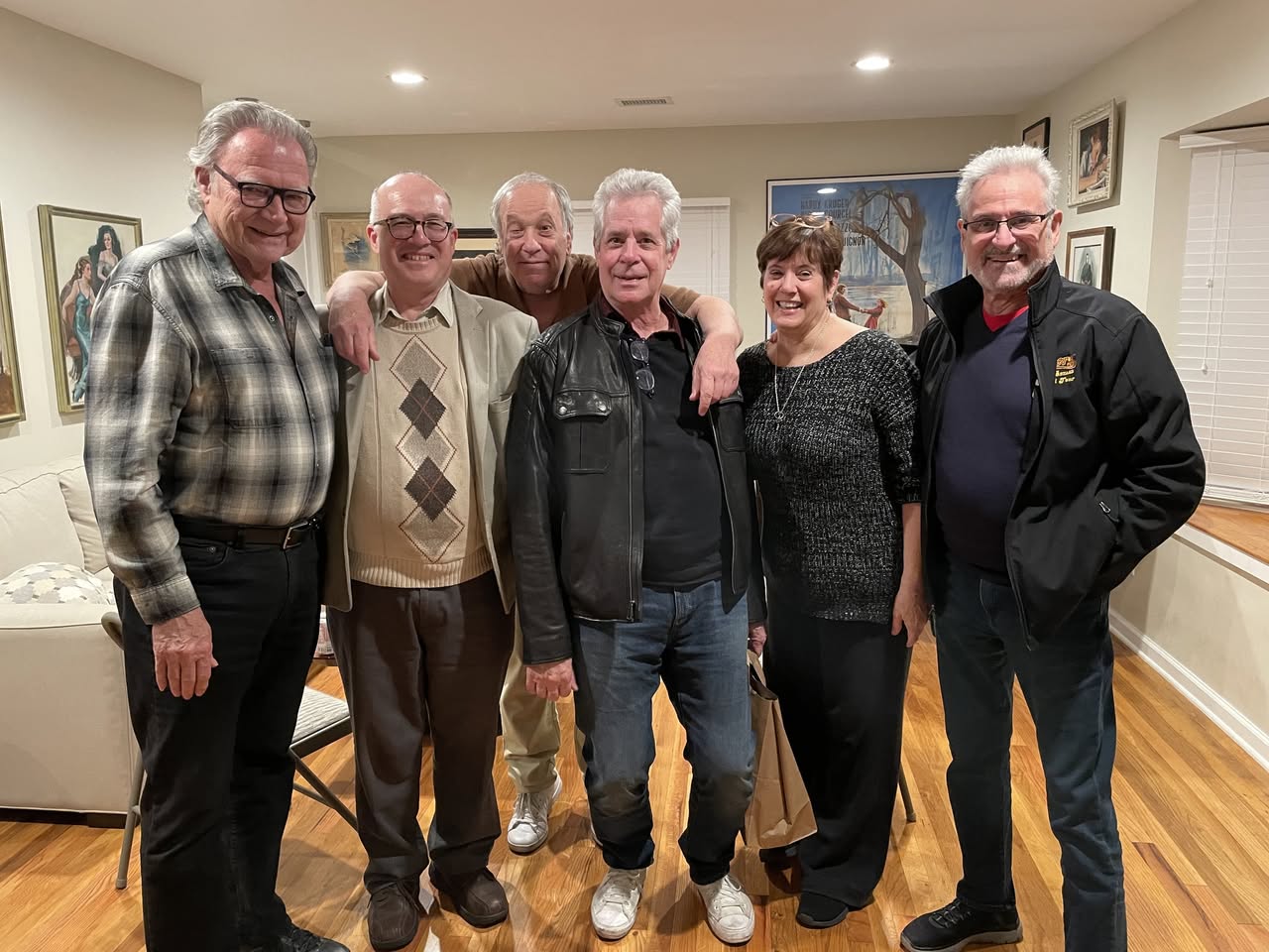 I gave Barry and Cindy a Christmas present – a three sheet poster for the first national tour of Bye Bye Birdie that played the East Coast, while the Bill Hayes company played the West Coast. It starred Gretchen Wyler, Dick Patterson, Kay Medford, and the original Birdie, Dick Gautier. Barry had done the show in its final months on Broadway and then did this tour. He loved the poster, which was minty fresh. The partay lasted until seven-thirty, even though I usually break it up at six. All in all, it was a lovely way to start a New Year, with friendly folks being friendly and enjoying each other’s company. Here’s a photo of a few of us – a couple of folks had left already.