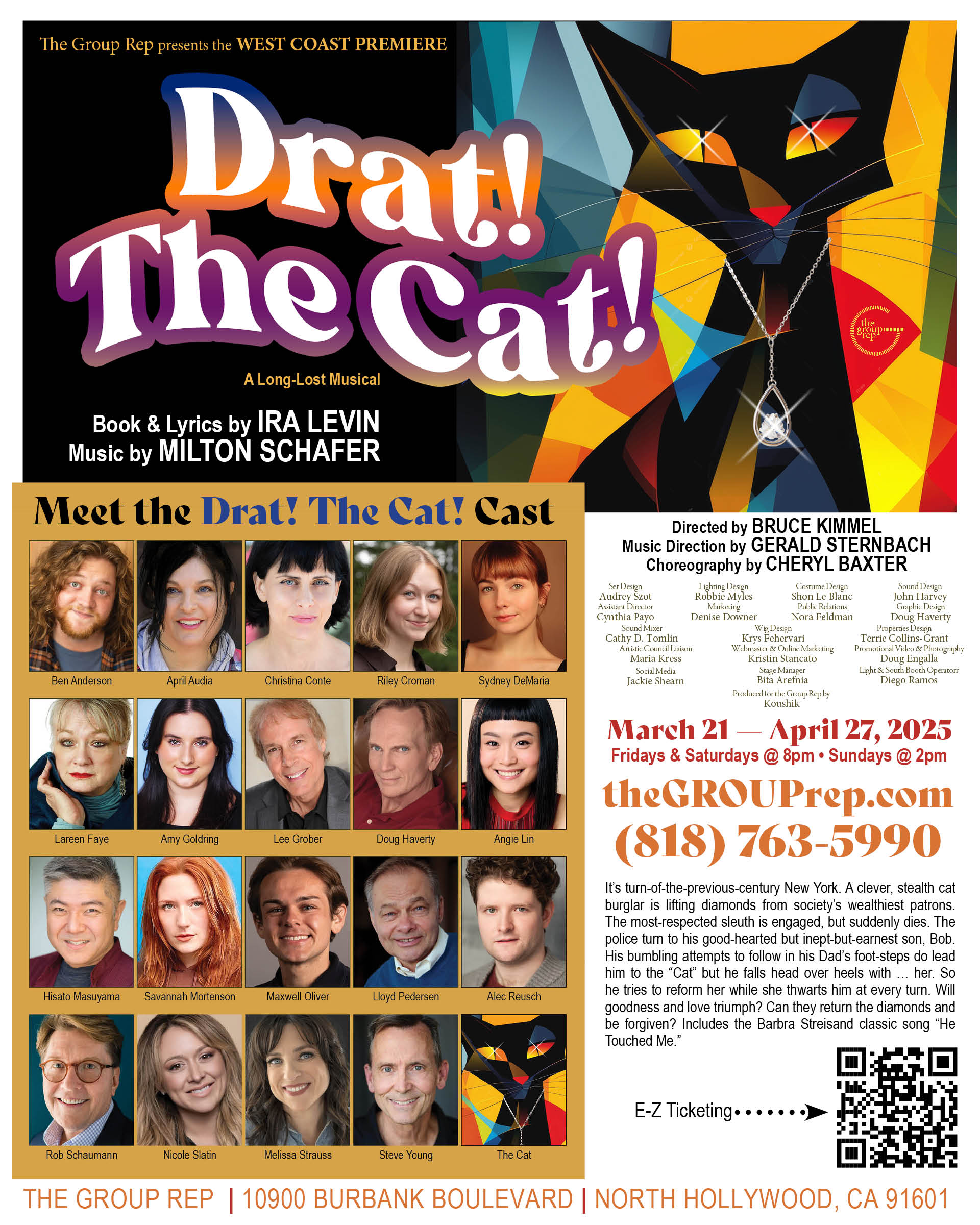 Aren’t they a loverly group? So, in alphabetical order, we have Ben Anderson (ensemble, patrolman), April Audia (she was in the original production of L.A. Now and Then – playing Kate), Christina Conte (Mrs. Van Guilder), Riley Croman (ensemble and dance captain), Sydney DeMaria (Alice van Guilder), Lareen Faye (ensemble), Amy Goldring (ensemble), Lee Grober (Mayor), Doug Haverty (Pincer), Angie Lin (ensemble), Hisato Masuyama (Butler and ensemble), Savannah Mortenson (Maid, ensemble), Maxwell Oliver (ensemble), Lloyd Pederson (Roger Bulldog Purefoy and Lucius van Guilder), Alec Reusch (Bob Purefoy), Rob Schaumann (Mallet), Nicole Slatin (ensemble), Melissa Strauss (ensemble), Steve Young (Doctor), and The Cat (?).