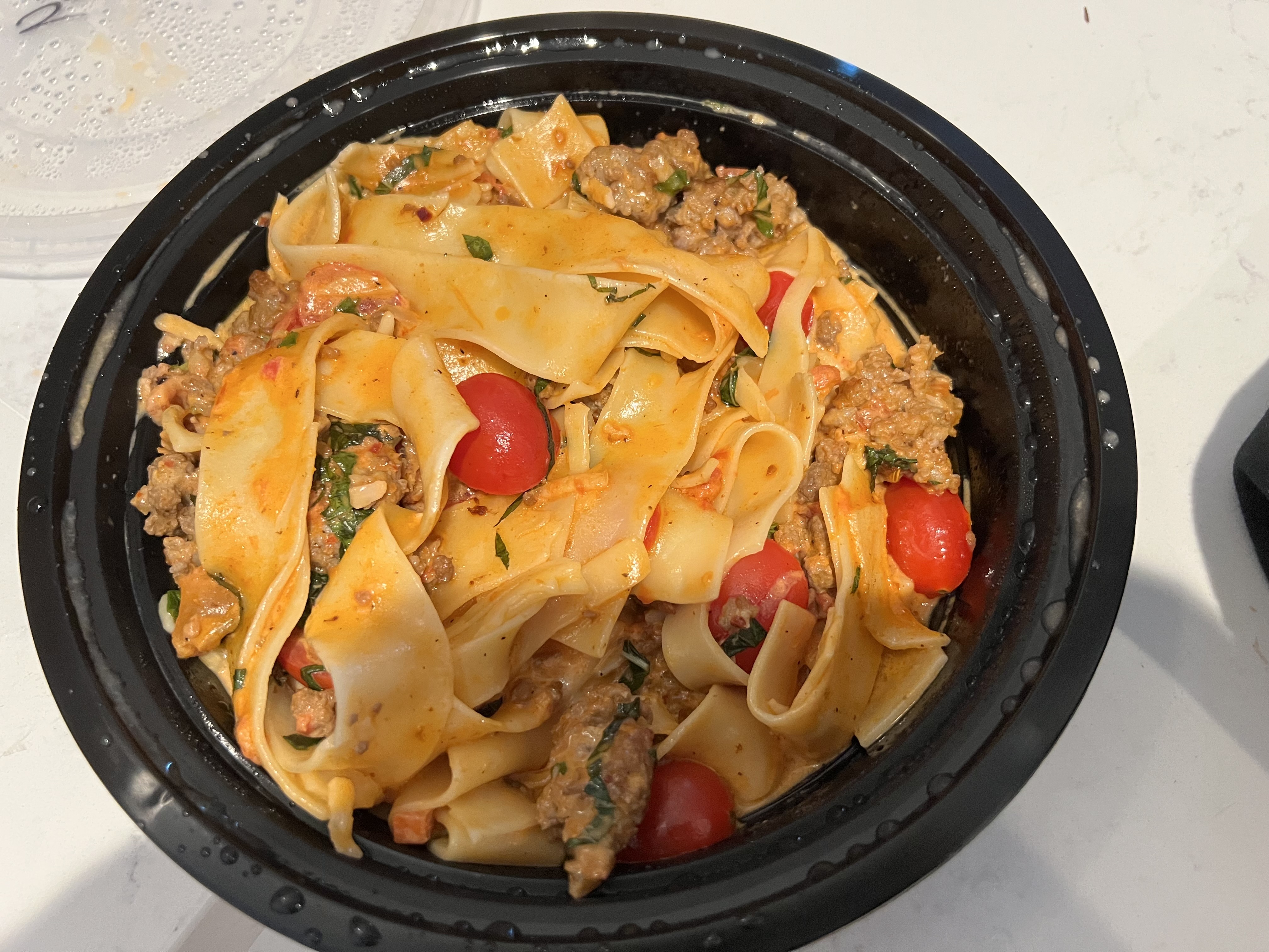 While we’re at it, here is an actual photograph of Maria’s Kitchen’s farfalle with Eyetalian sausage and tomatoes.